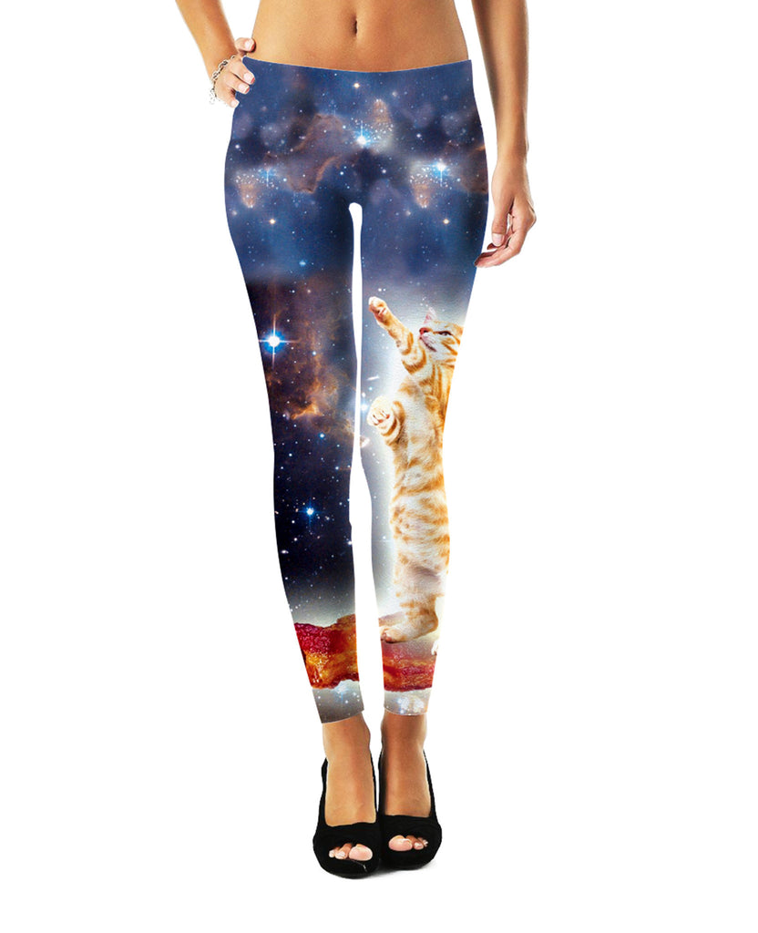 Space?! Cats!? BACON!? These leggings have it all! You don't need anything else with this crazy yet amazing all over print! Get your Bacon Cat Leggings today!